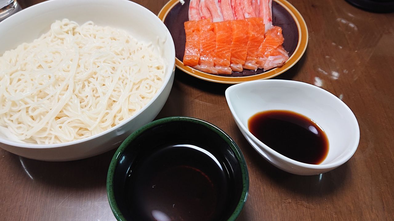 今回:そうめん・刺身・カニかま